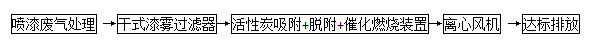 一、喷涂废气净化处理(干式过滤+活性炭吸附+有机废气催化燃烧处理装置)工艺流程图: