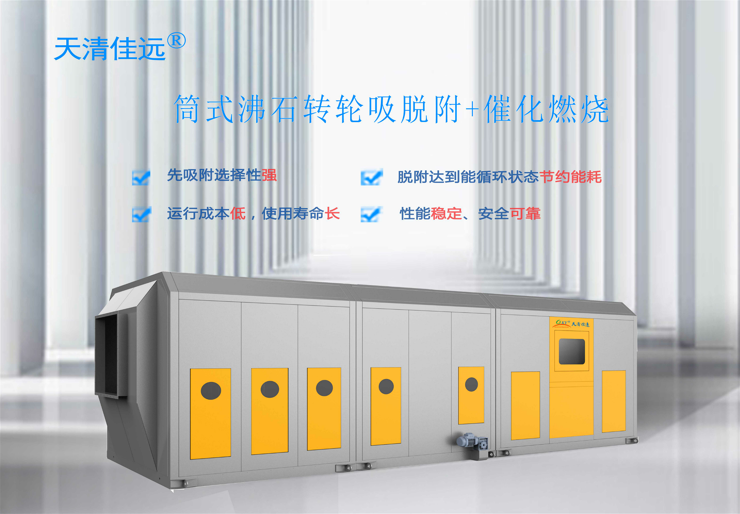 沸石轮浓缩+催化燃烧:沸石转轮浓缩设备吸附选择性强,适合低浓度大风量的废气,使用寿命长,吸附脱附可连续运行,是目前比较常用的有机废气处理方法。