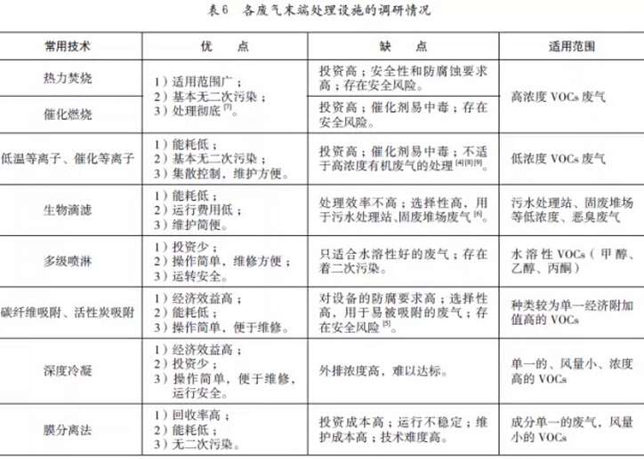 国内外VOCs末端处理技术的优点、缺点和适用范围