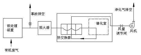 5.吸附有机物废气的活性炭床,用催化燃烧后的废气进行脱附再生,脱附后的气体再送催化燃烧室进行净化,不需外部能量,运行费用低,节能效果显著。